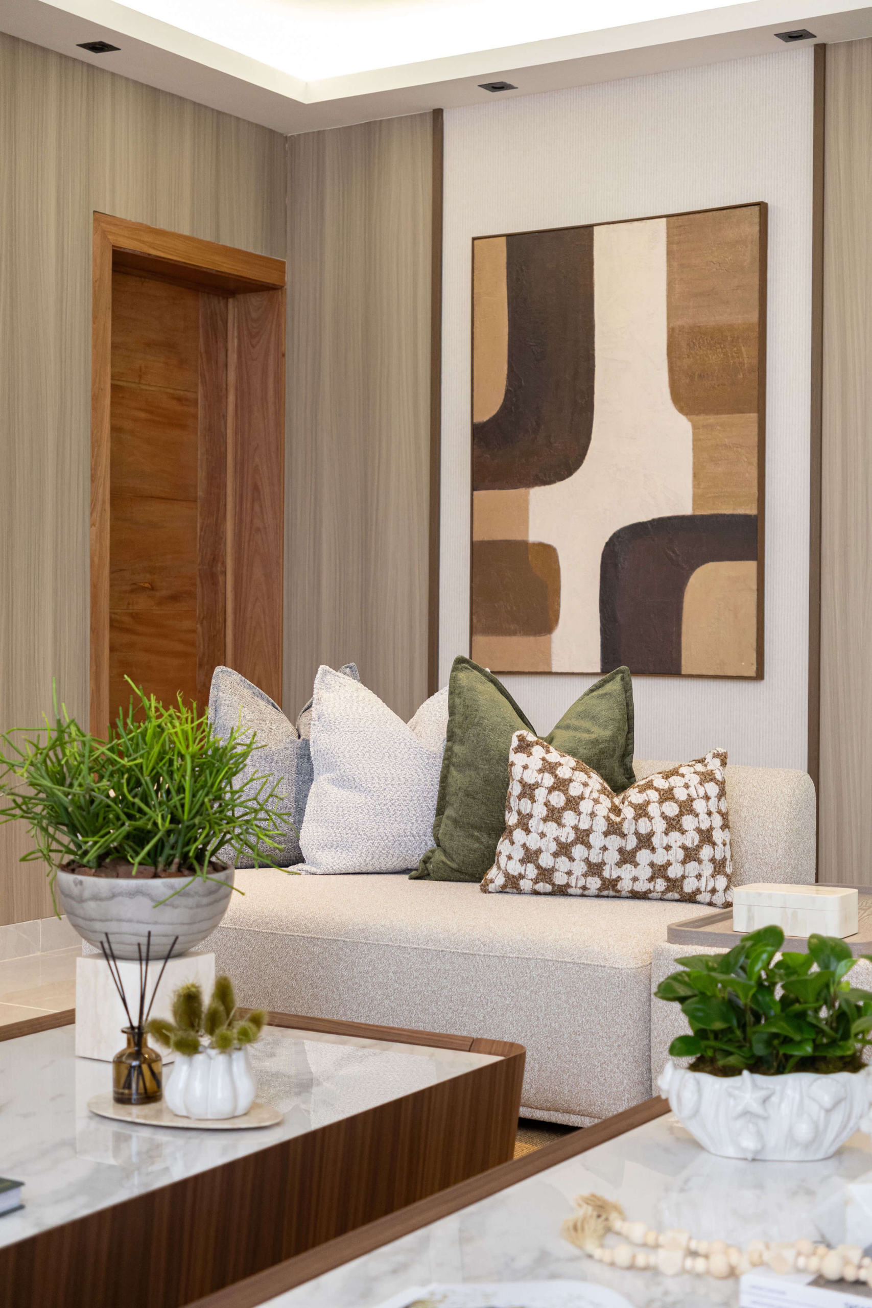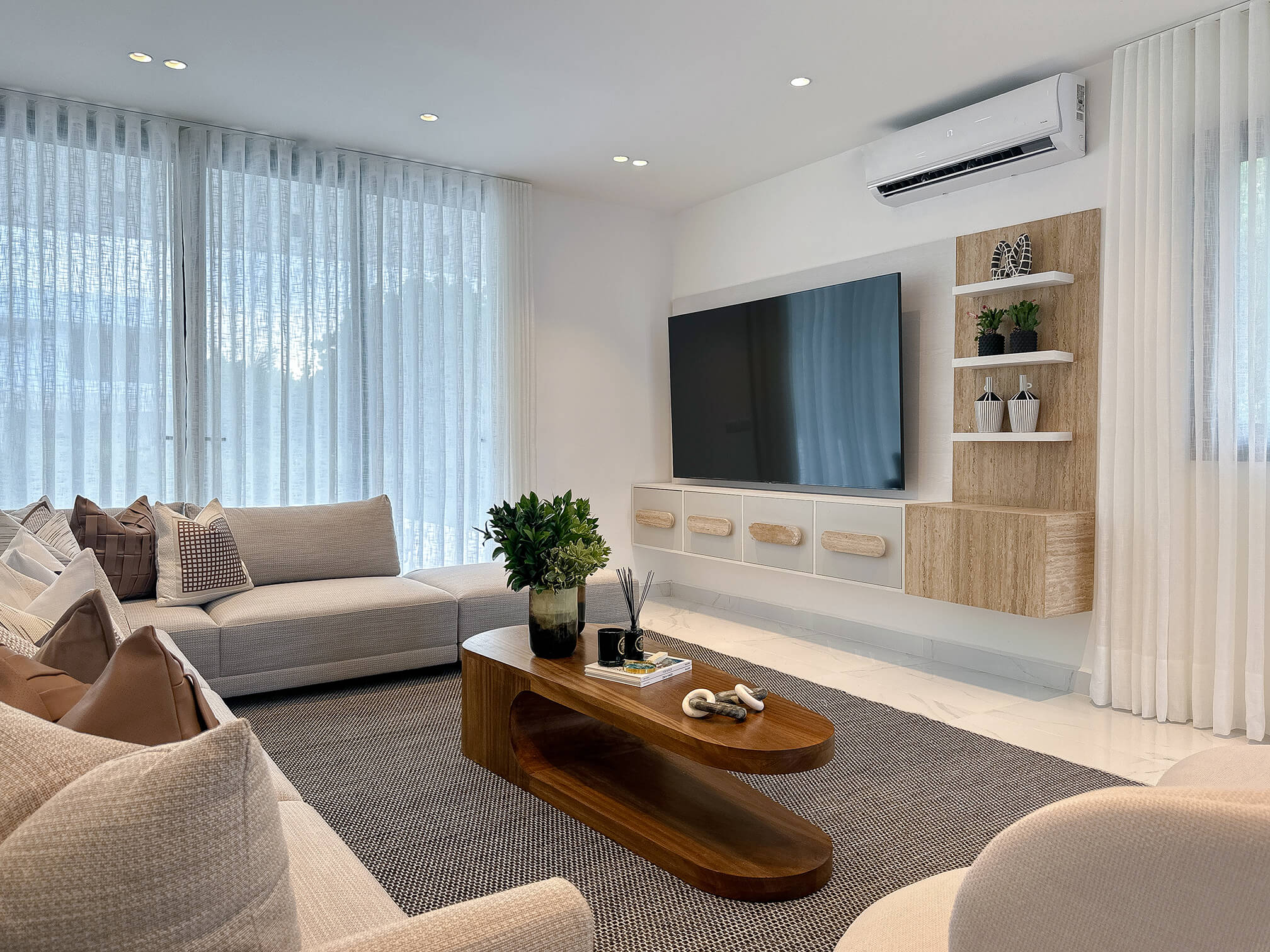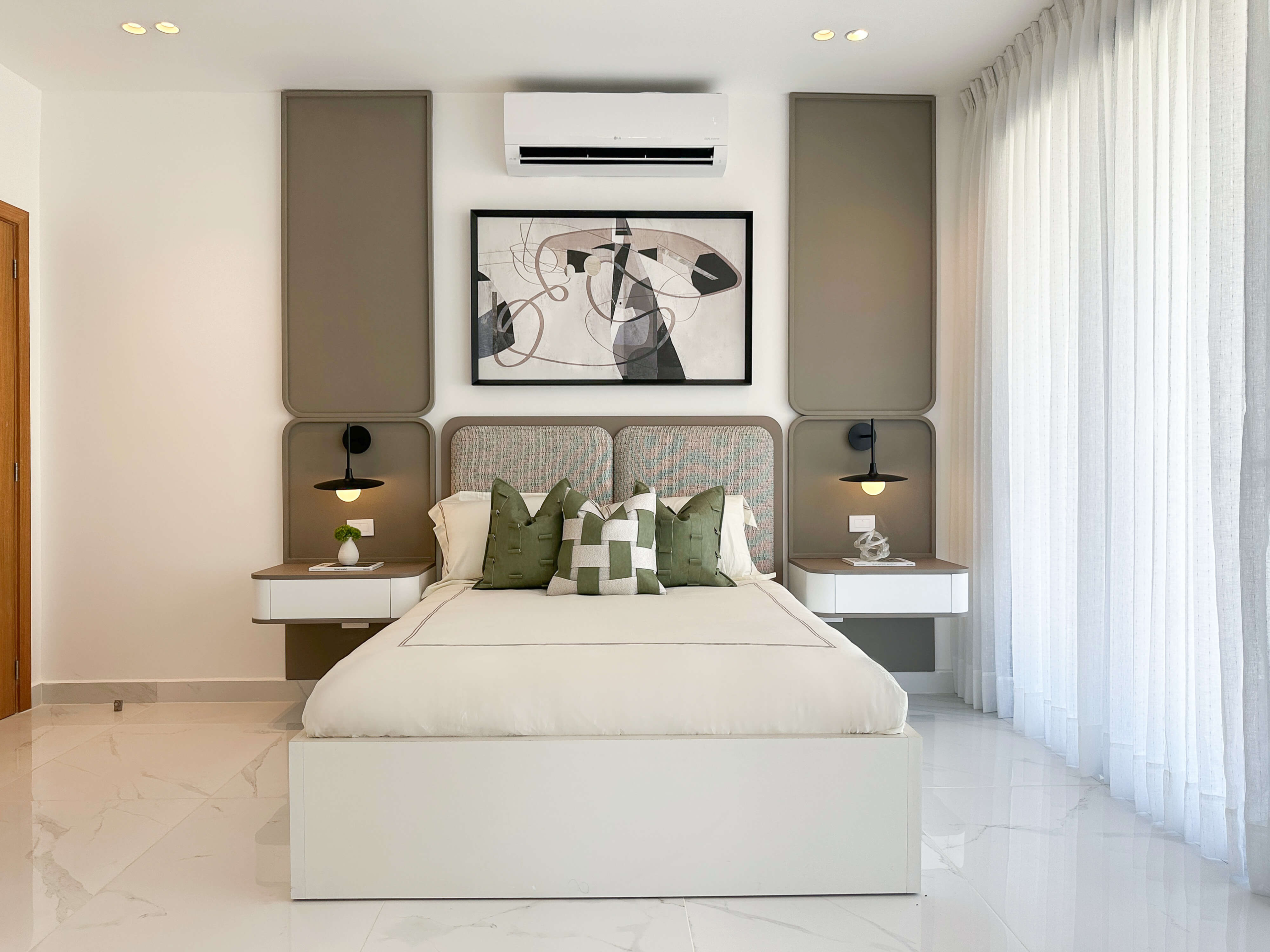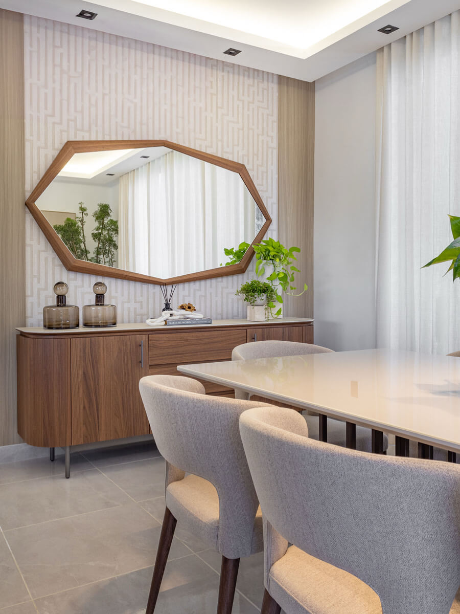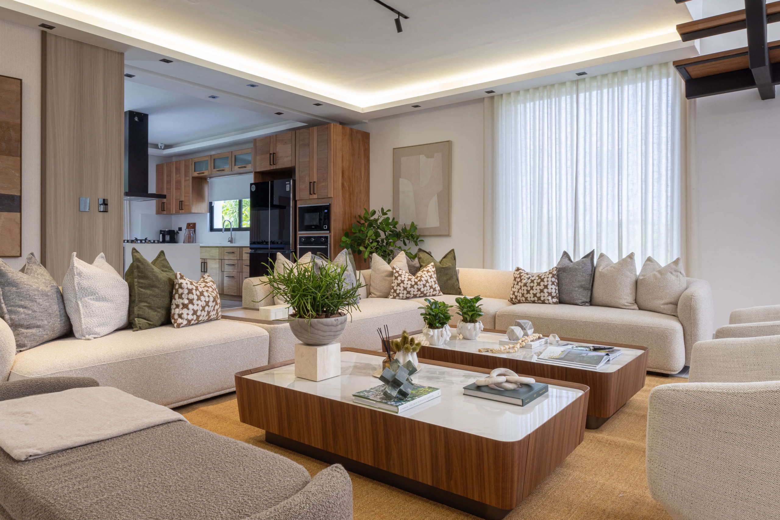 El mobiliario de líneas limpias y formas orgánicas prioriza la funcionalidad sin perder elegancia, complementado con textiles suaves y piezas decorativas cuidadosamente seleccionadas. En conjunto, el diseño logra un equilibrio entre estética, confort y armonía, creando un hogar contemporáneo pensado para disfrutarse en el día a día.