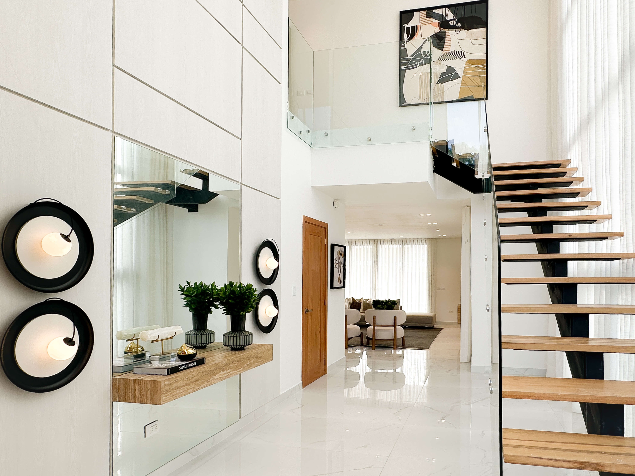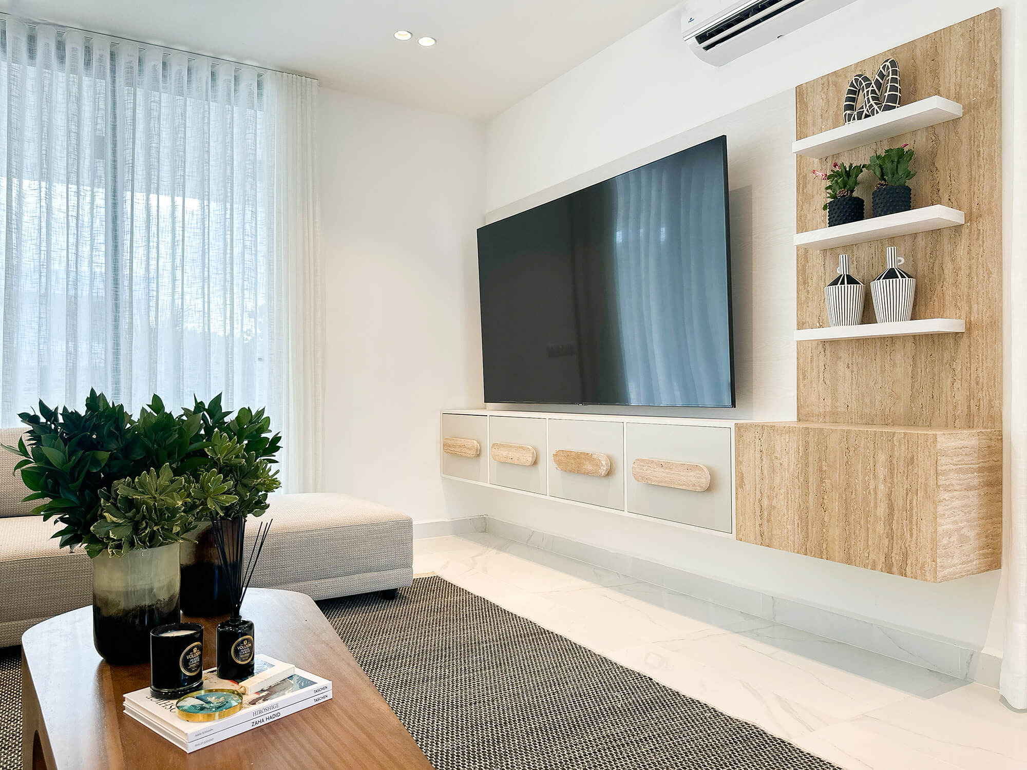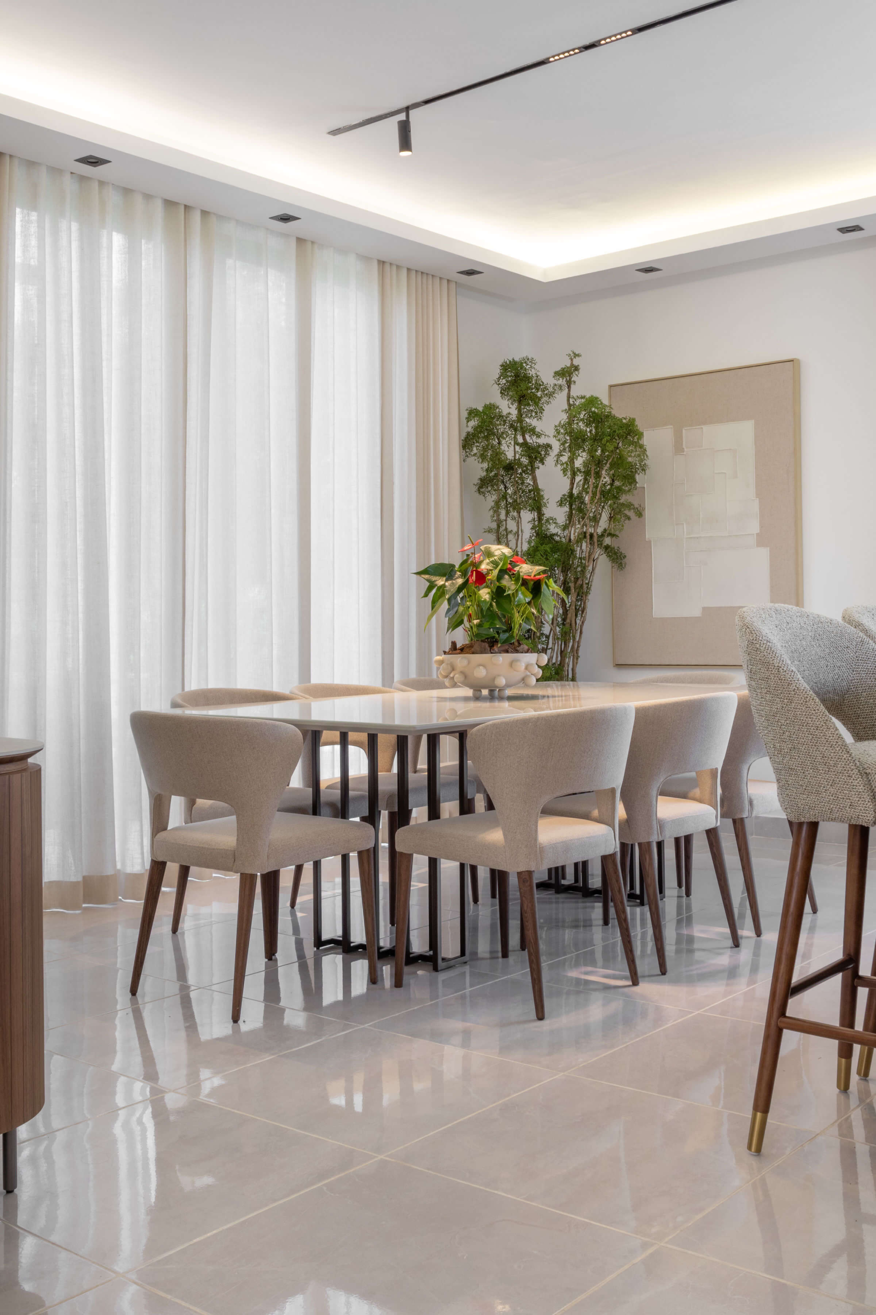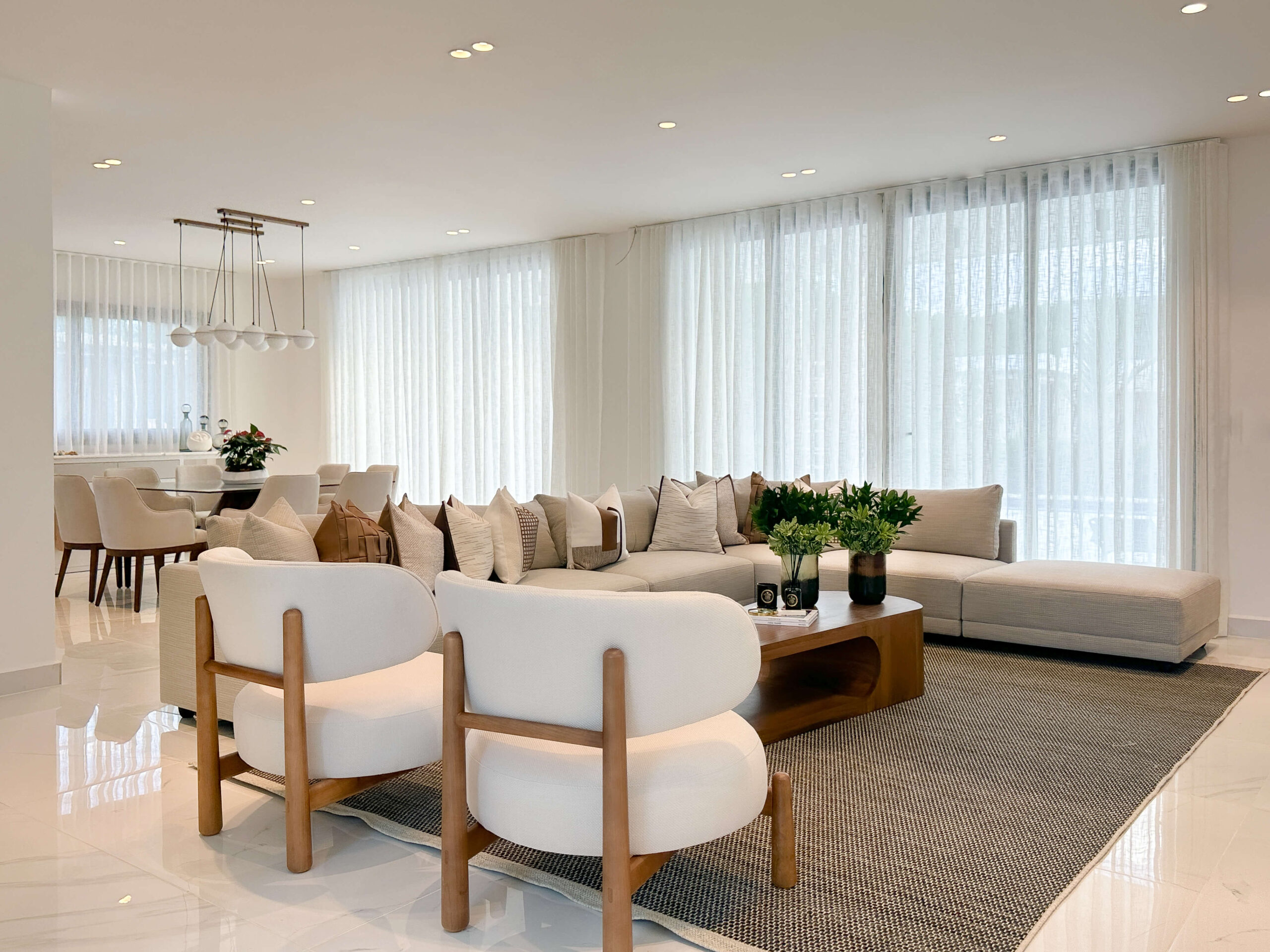 El mobiliario de líneas limpias y formas orgánicas prioriza la funcionalidad sin perder elegancia, complementado con textiles suaves y piezas decorativas cuidadosamente seleccionadas. En conjunto, el diseño logra un equilibrio entre estética, confort y armonía, creando un hogar contemporáneo pensado para disfrutarse en el día a día.